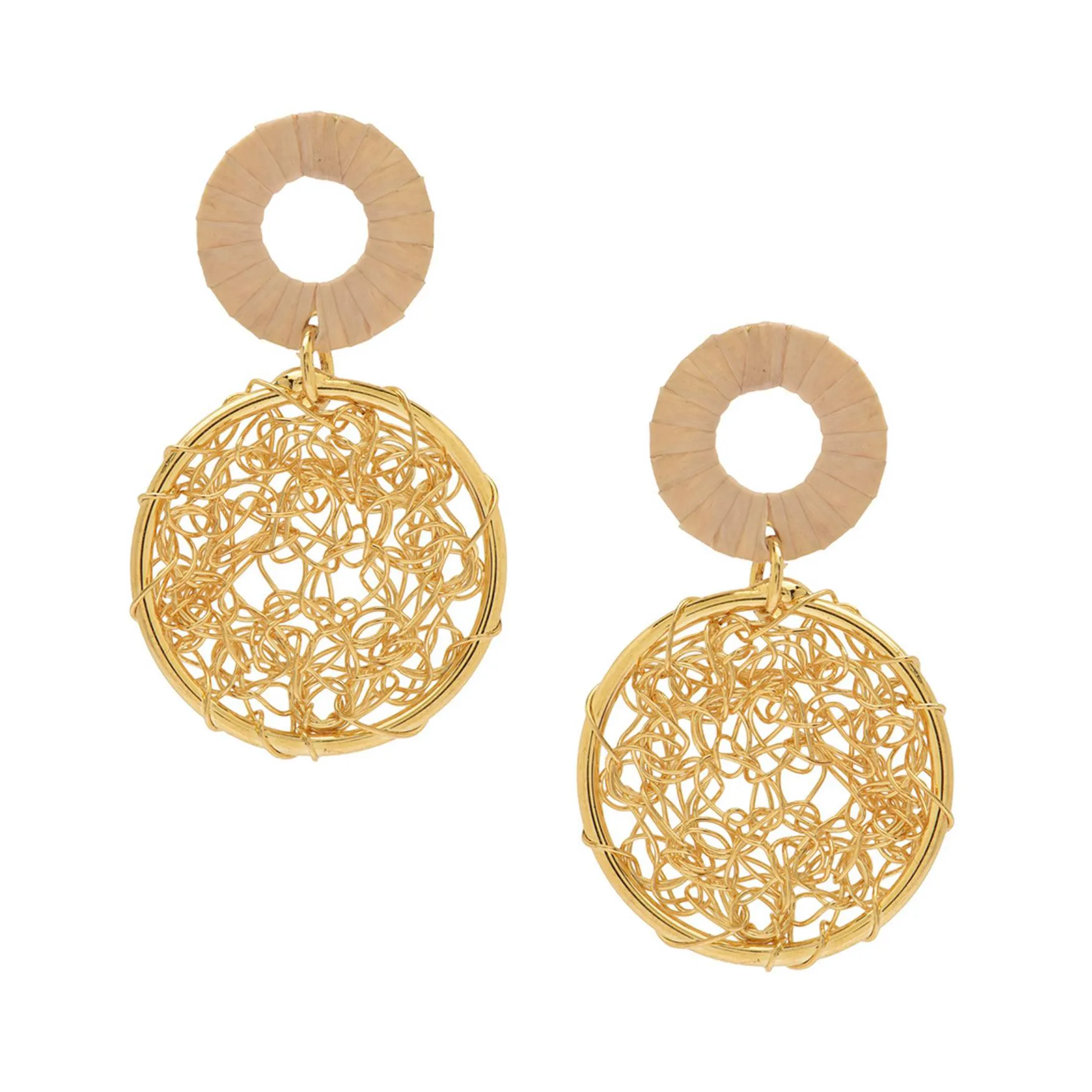 Confeccionados em seda da fibra de Buriti e fio de cobre crochetado e banhado a ouro.