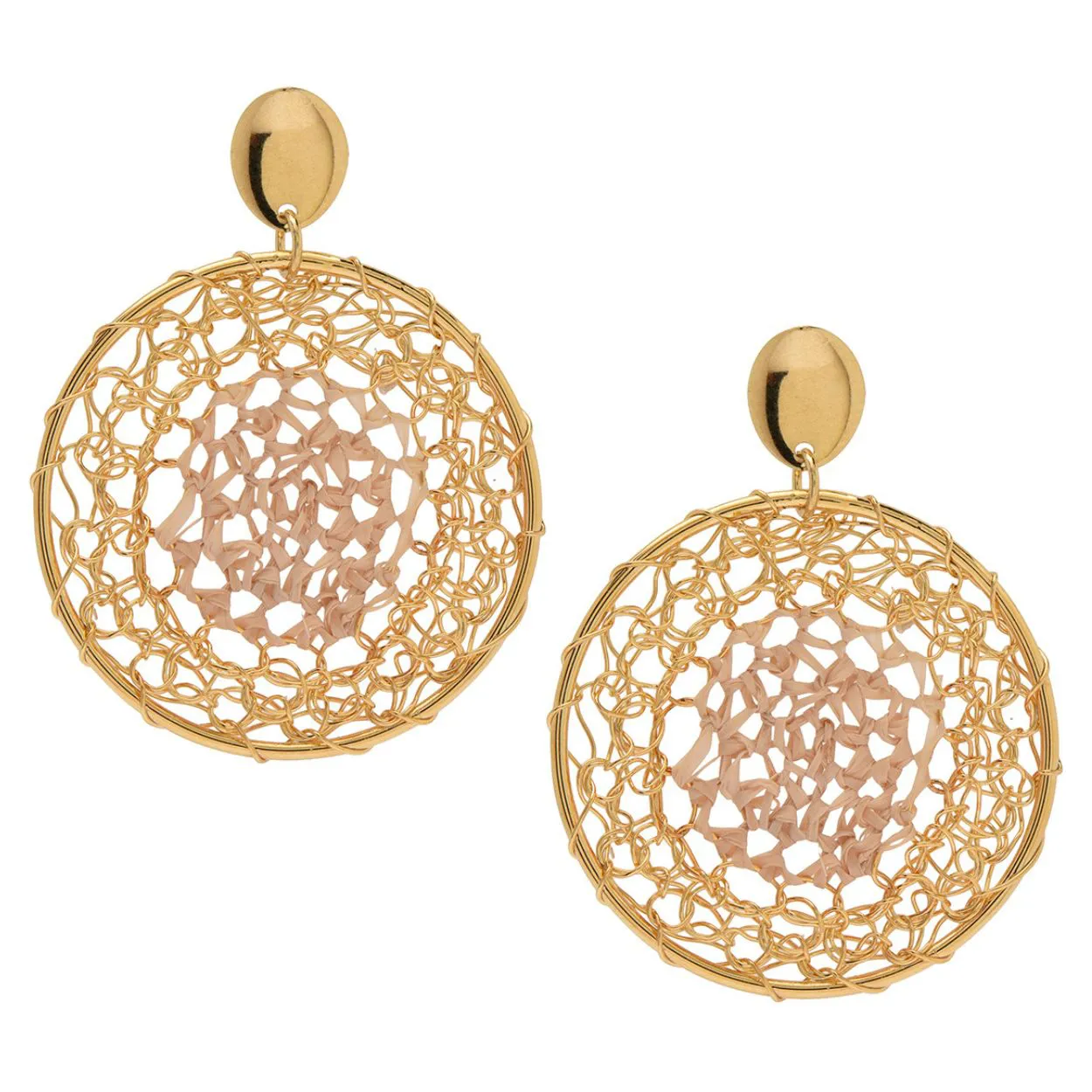 Confeccionados em seda da fibra de Buriti e fio de cobre crochetado e banhado a ouro.