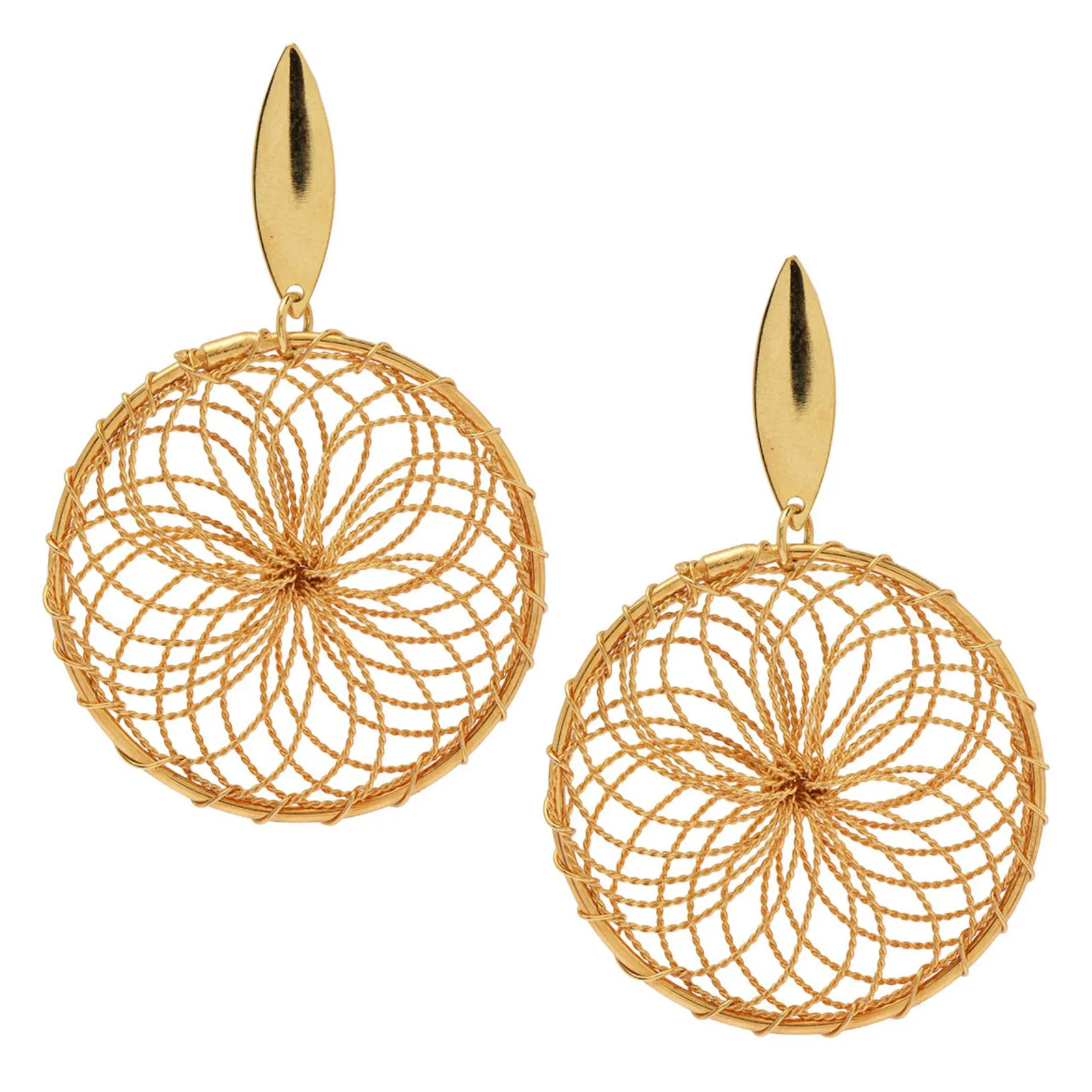 Brinco aramado em formato de rosa dos ventos , banhado a ouro.