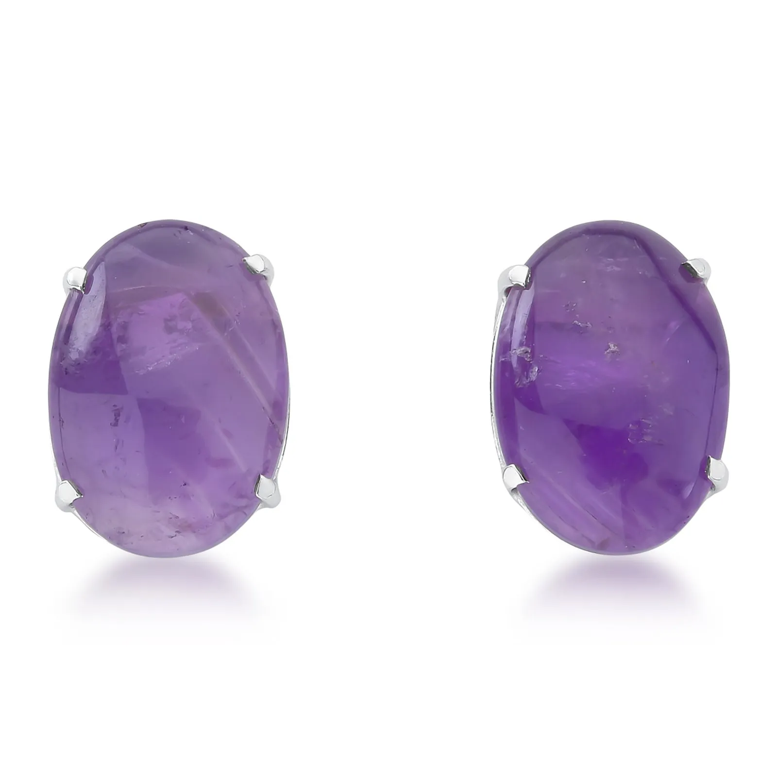 Brinco Fixo de prata 925 com pedra natural de Ametista.