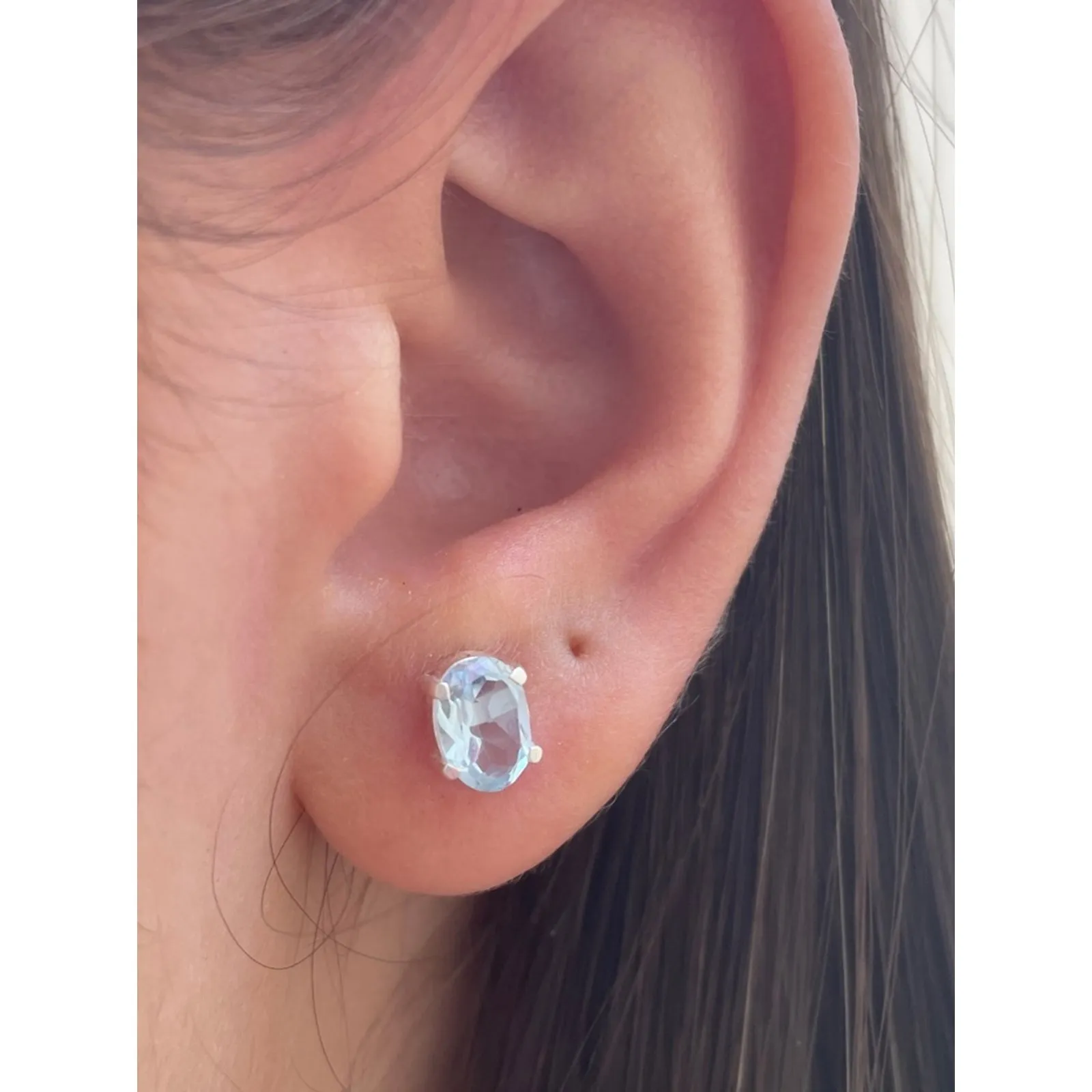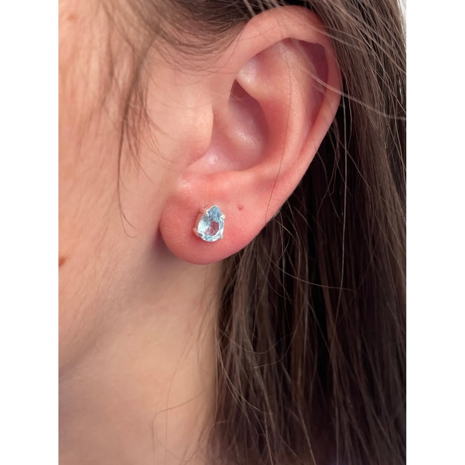 Brinco fixo de Prata 925 com pedra natural de Topázio Sky Blue.