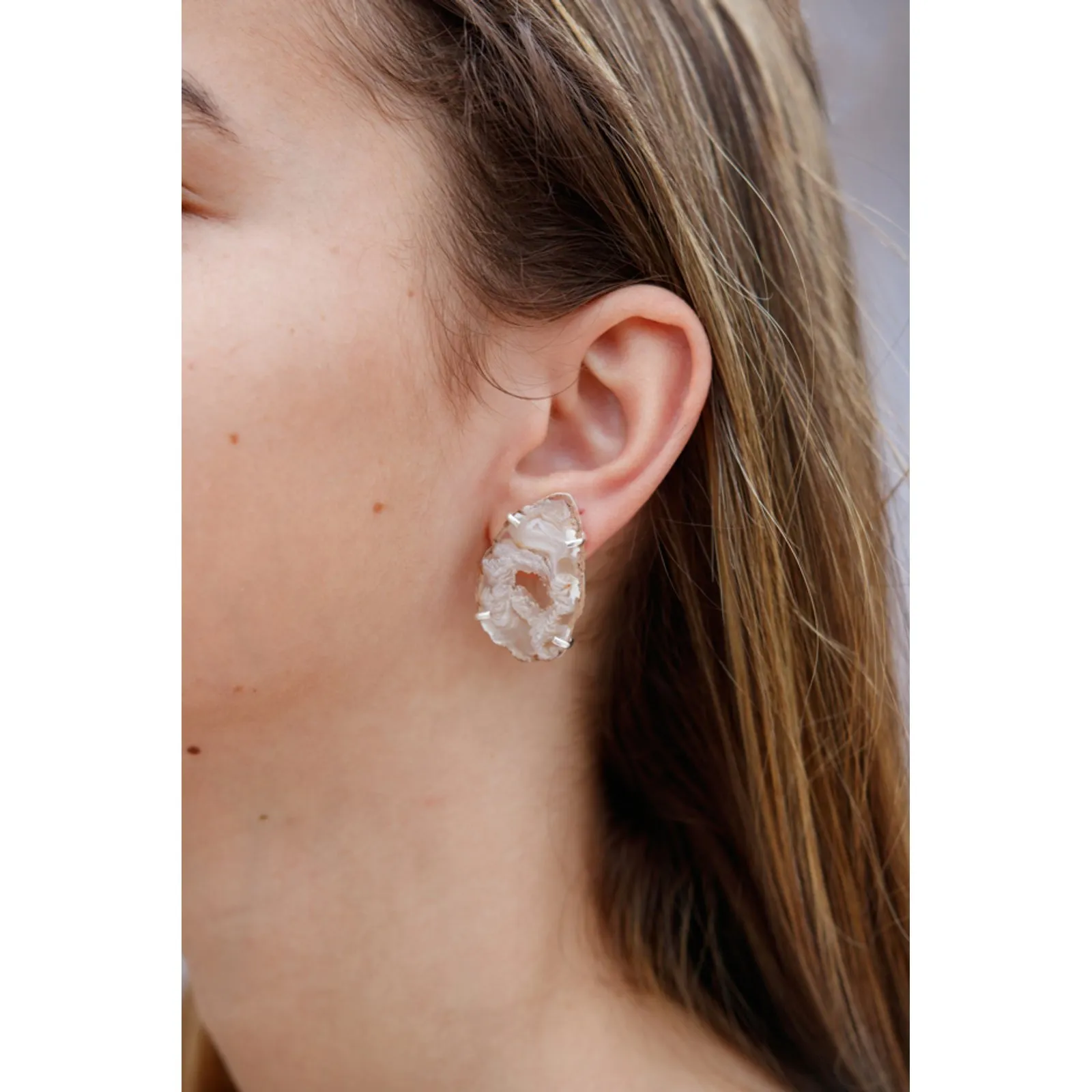 Brinco de prata 925 com pedra natural de Geodo de ágata.