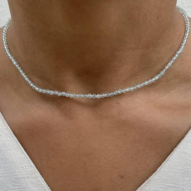 Chocker em esferas com pedra natural apatita.