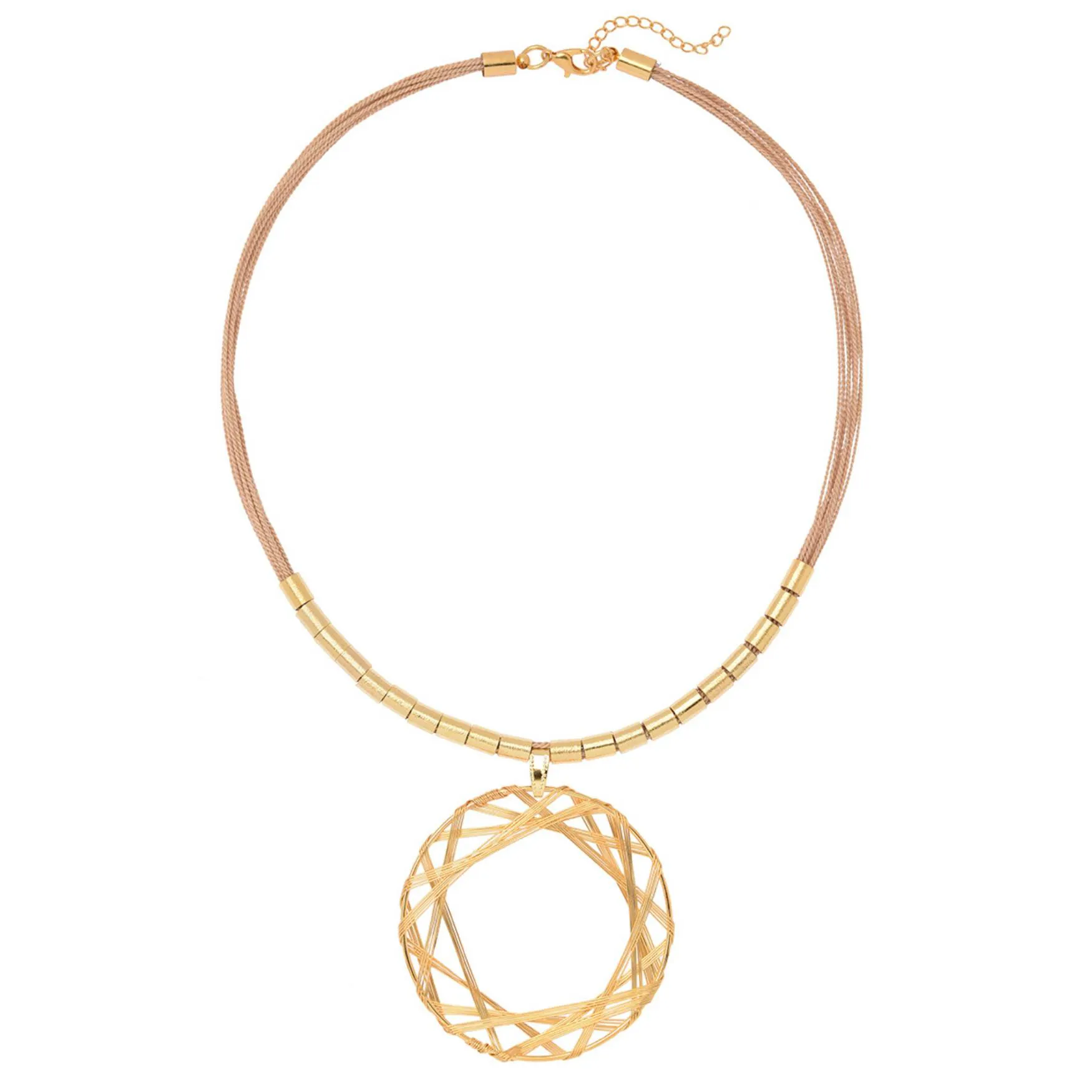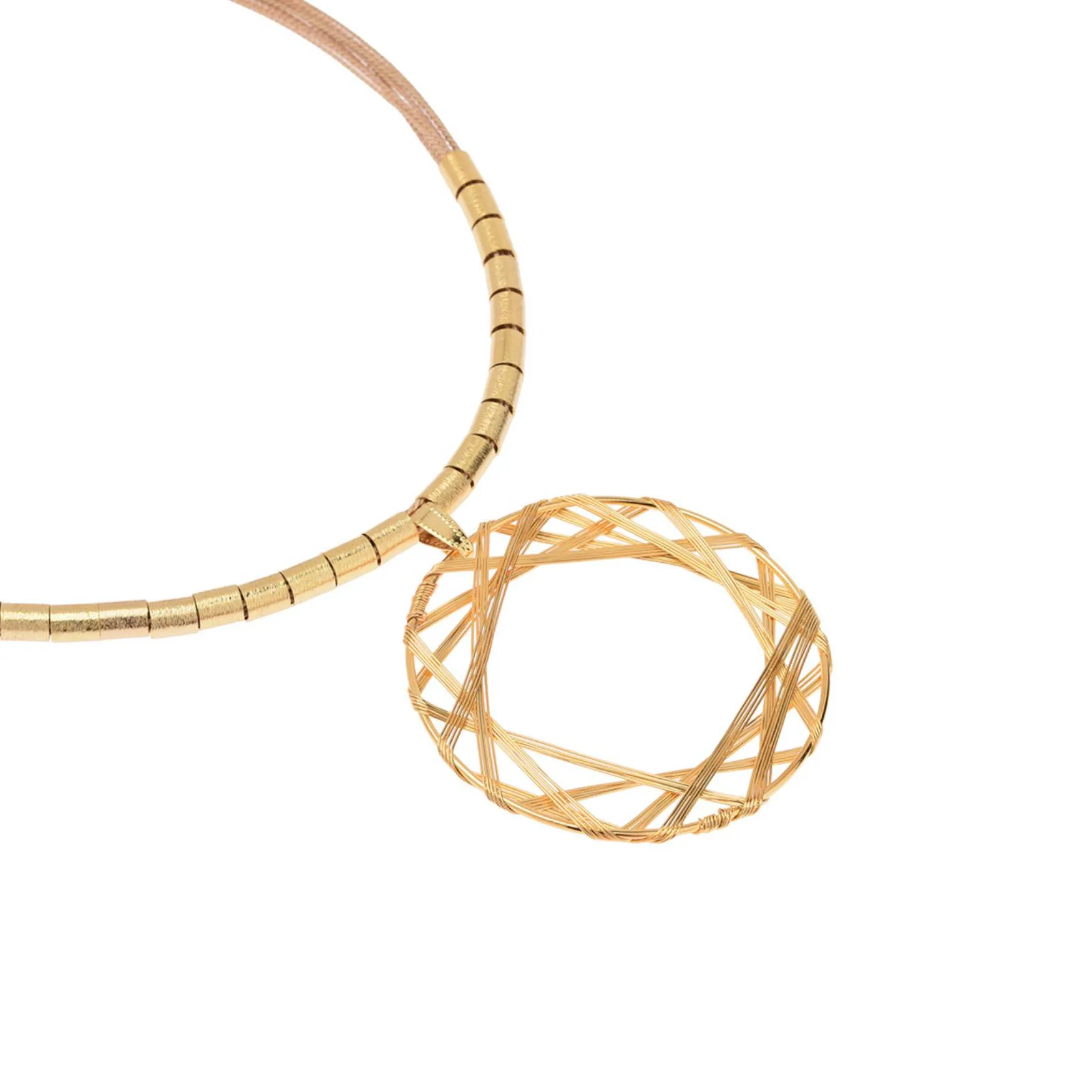 A maneira criativa de recriar uma estrela, imprime elegância e modernidade às peças. Colar e brinco confeccionados em fio de cobre banhado a ouro e cordas em fibra de Buriti.