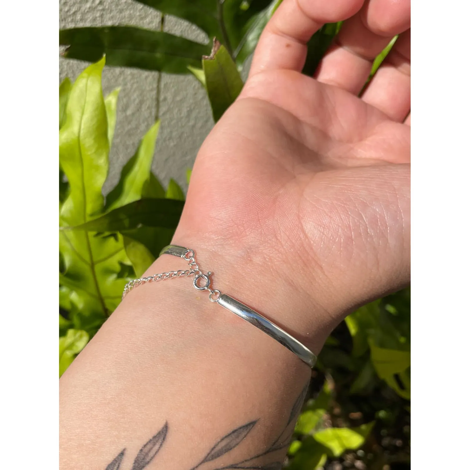 Pulseira de prata 925 com pedra natural de Chapa de Àgata verde, formato Bruto.